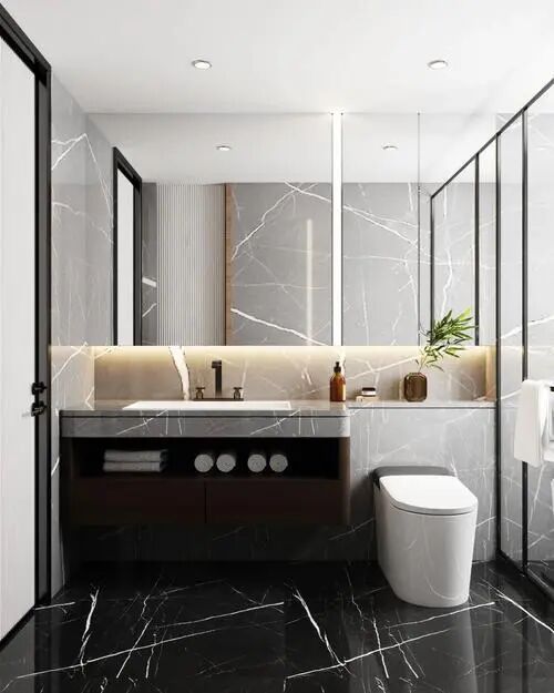 ✅ 正确做法:地面瓷砖选“防滑系数≥0.5”的哑光砖或仿古砖,表面有凹凸纹理,遇水后摩擦力大,不容易滑倒;同时选“通体砖”,就算表面磨损,颜色也和内部一致,不影响美观。墙面瓷砖可以选亮面砖,方便清理,但要注意选“吸水率低”的(吸水率≤0.5%),避免水汽渗进去发霉。