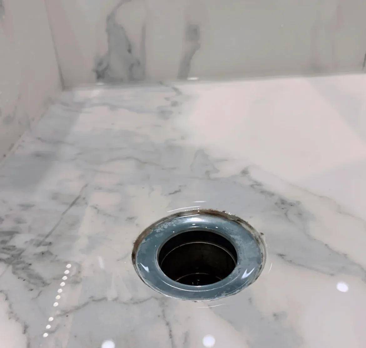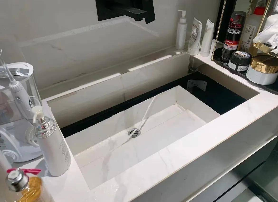 首先是排水慢,因为岩板无法做弧度,积水总是会残留在台盆底部,致使台盆的四个角发黄变黑、难以清理。