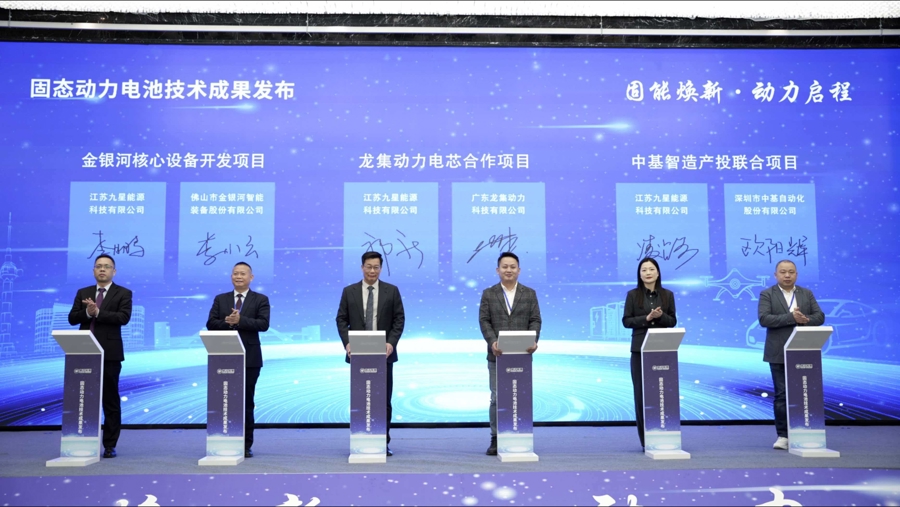 当天,江苏九星能源还与龙集动力、金银河、中基等产业链伙伴签署合作协议,构建起“研发—生产—应用”的协同生态。“固态电池能广泛应用于新能源汽车、两轮电动车、无人机、机器人及消费电子等多个领域。”固态离子能源科技(武汉)有限公司创始人兼首席科学家郭新介绍,目前公司正以消费电子等市场为切入点,加速商业化进程。