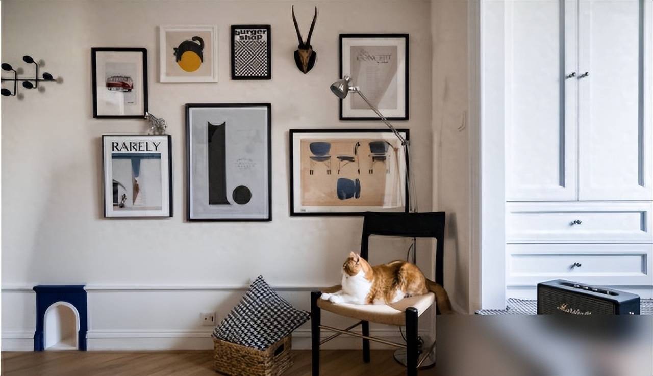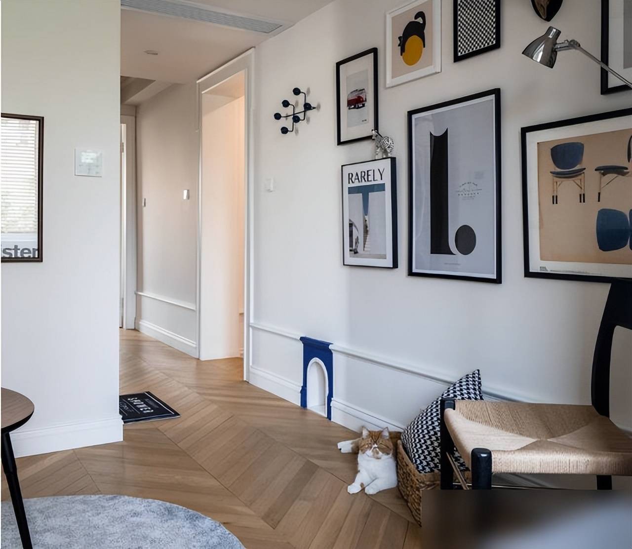 不如留块干净的墙挂喜欢的画,再给猫留个洞——养宠的人都懂,不用总扒着门让猫钻,也不会在墙上挖个丑洞,细节里全是贴心。